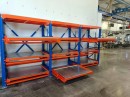 Изготовили и установили тяжеловесные стеллажи серии Slide с 3-мя полкам, нагрузкой до 1400 кг на каждую. Конструкция адаптирована под размеры и вес оборудования заказчика. Полки оснащены механическим приводом со съёмной рукояткой. А также встроенным механизмом защиты от одновременного выдвижения уровней.