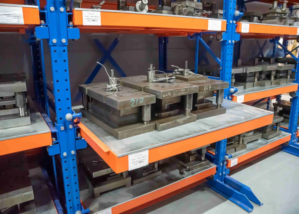 Стационарные стеллажи с полками полного выдвижения для хранения оснастки, инструмента и других предметов с механизмом защиты и нагрузкой на полку до 200 кг.